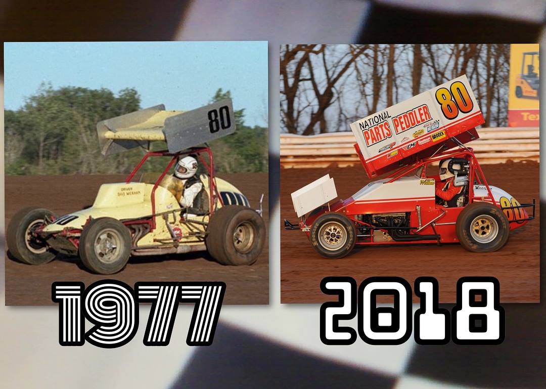 second heat. It was a humiliating run. I had hopes that I was getting things figured out but the car was completely unhooked. We ran the B to see if any changes helped but we were still just on top of the the track with no bite. This track was like racing on ice compared to a dry slick PA track. Port Royal 305 4-21-18 Another nice day in PA. One of those sunny warm spring days that let you feel comfortable while scrambling around to get the car ready. This race at Port was like a class reunion. I pulled into a pit spot that was next to Bill and Bob Landis, both of whom I'd raced with here in the 80's. They were sponsoring a car and it carried their number 88. Duval, my friend, and crew from the 80's was there with the 1W car with one of his motors in. Numerous racers, friends and fans stopped by to talk and see if it was the same guy still racing the Parts Peddler 80. Jody and George stopped by and said they were fans from way back and wanted to sponsor me then but never did. "How much to get our name on your car?" they asked. I was speechless and said that anything would be helpful. They said they were going to the ATM and would be back with enough for a new RR tire. And 15 minutes later they showed up with a handful of ATM cash. It was a great feeling to be remembered and still have some fans. I ordered the lettering during the week and will have it on the car, next race. Two friends of Denny Gross have stepped in to help crew the car. Jim Miller and his son Robbie live only a few miles away in Hanover. Jim has been in racing his whole life and knows what to do. Mike McConnell and his son have a 305 that is being finished. They have showed up at each race and have been great help. PA racers are a friendly and helpful bunch. It has been a huge relief to have such great help and great new friends in my second PA adventure. This would be the third race of my newcomer status so I would start last all night. At the next event I will be considered a fully initiated member and can draw a pill for starting position (however if I race the 360 anywhere, I start last in my heat at my next 305 event. It's more clubby than I like but... ). In the last two events there were less than 24 cars so I got to run the features but this night brought 40 cars and although the promoter would start 26, it still meant that 14 would watch. The track was already dry and glass smooth in hot laps and a loose cushion was way up the track. It is where everyone ran as hot laps worked the track in. Starting 10th in the 4th heat with 5 to qualify was a tall order. As we entered the first turn, other's lifted and I felt hooked up and drove between cars and passed two going in. The middle was dry and lacked bite but the car drove through but was spinning the tires coming off. As the pack strung out it was a challenge to get any edge on the car in front. In the end, I passed two cars and finished 8th. Starting 12th in the Bmain, taking 6, I thought there might be a chance. Again heading to the first turn I was able to pass going in and pedal the second turn to keep the line and get the most forward bite. I had checked out the cushion on pace laps. It was three feet off the wall, both ends and I was not yet confident enough to take that challenge so I found the tacky spots on the bottom and worked them. The car in front ran the cushion or high middle some laps and dove for the bottom on others. I stuck my nose in and kept him off the tacky strip and for the rest of the race we ran side by side, each gaining or losing some ground each lap. Last lap I got a good run out of two and we entered three even. He went to the top and I got a great line on the bottom. The drag race down the front straight put him ahead by a bumper. We were both out of a qualifying spot but, it was the most fun racing you could have. I am impressed with the 305 package. We are the last class to run each night so we see the slickest tracks. That fits will with the car and I like the challenge of the slick. Of course PA slick is different than NY slick. PA clay has bite where NY clay is like ice. I was going to run the 360 in PA some, but I think I'll stick with the 305 in PA and just take the 360 to NY when I go there to help out with caring for my mother and working on the properties there.